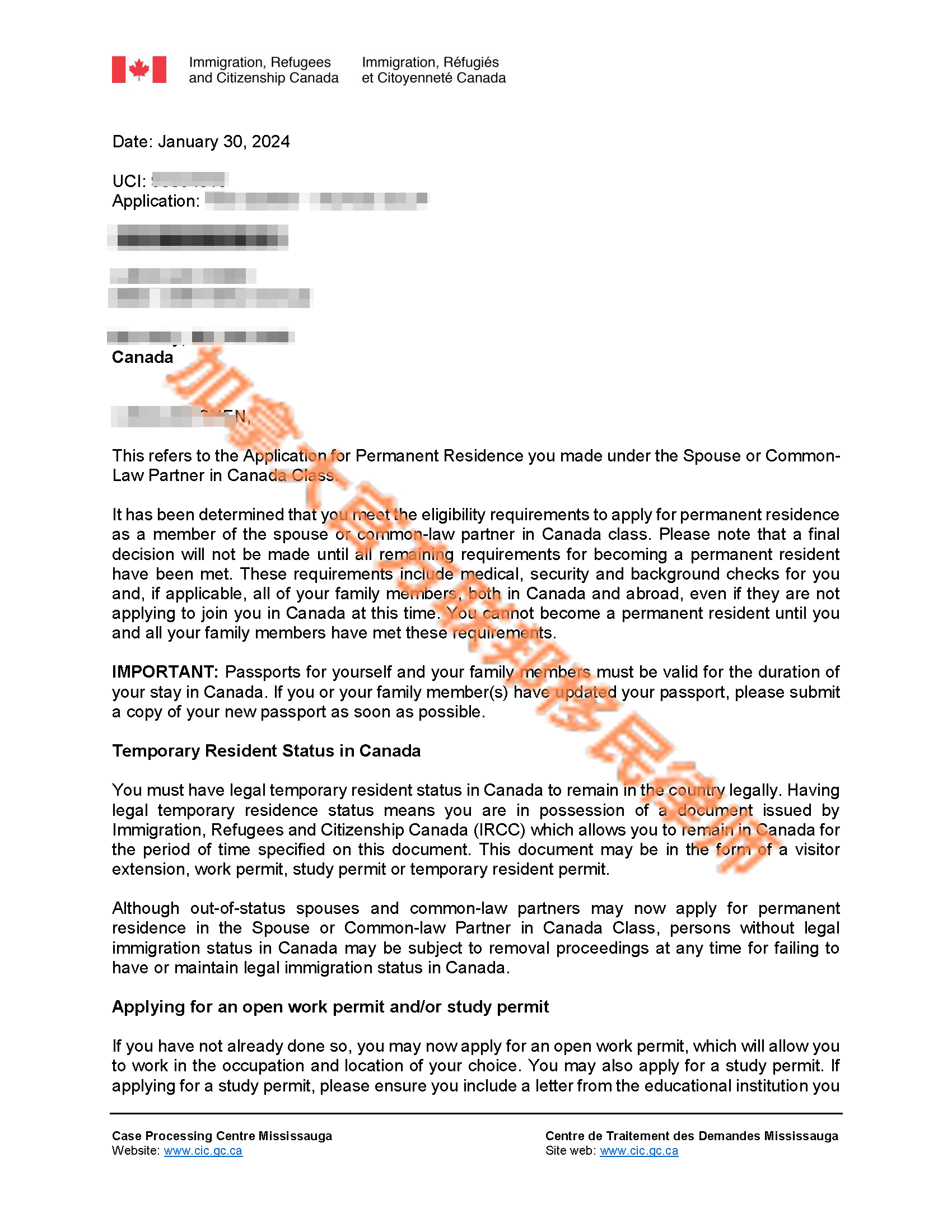 沟通和协调:律师代表曹同学与加拿大移民、难民和公民事务部(IRCC)进行沟通,确保申请过程中的每一步都顺利进行。